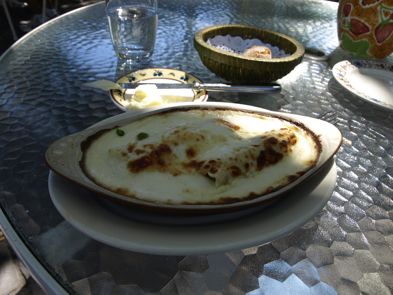 注文はスープとCANELON a la CATALANA(pasta tubes stuffed with chicken)。この日は30度を超す暑い日だったのだが、撮影のことを考えてつい屋外を選択してしまい、汗だくに…。ちなみにこの店はservice charge included(19%くらい)なのでチップのことは考える必要がない。税金も含めて、全部で$27.30。スープを省けばもう少し安くなるとはいうものの、通常の昼飯用にしてはちょっとお高いか。たぶん注文してから作ってるので(いいことだが)出てくるのにも時間がかかるので、平日lunchには不向き。土曜の昼ごはんをゆっくり食べるのにたまに利用するという感じならいいかもしれない。