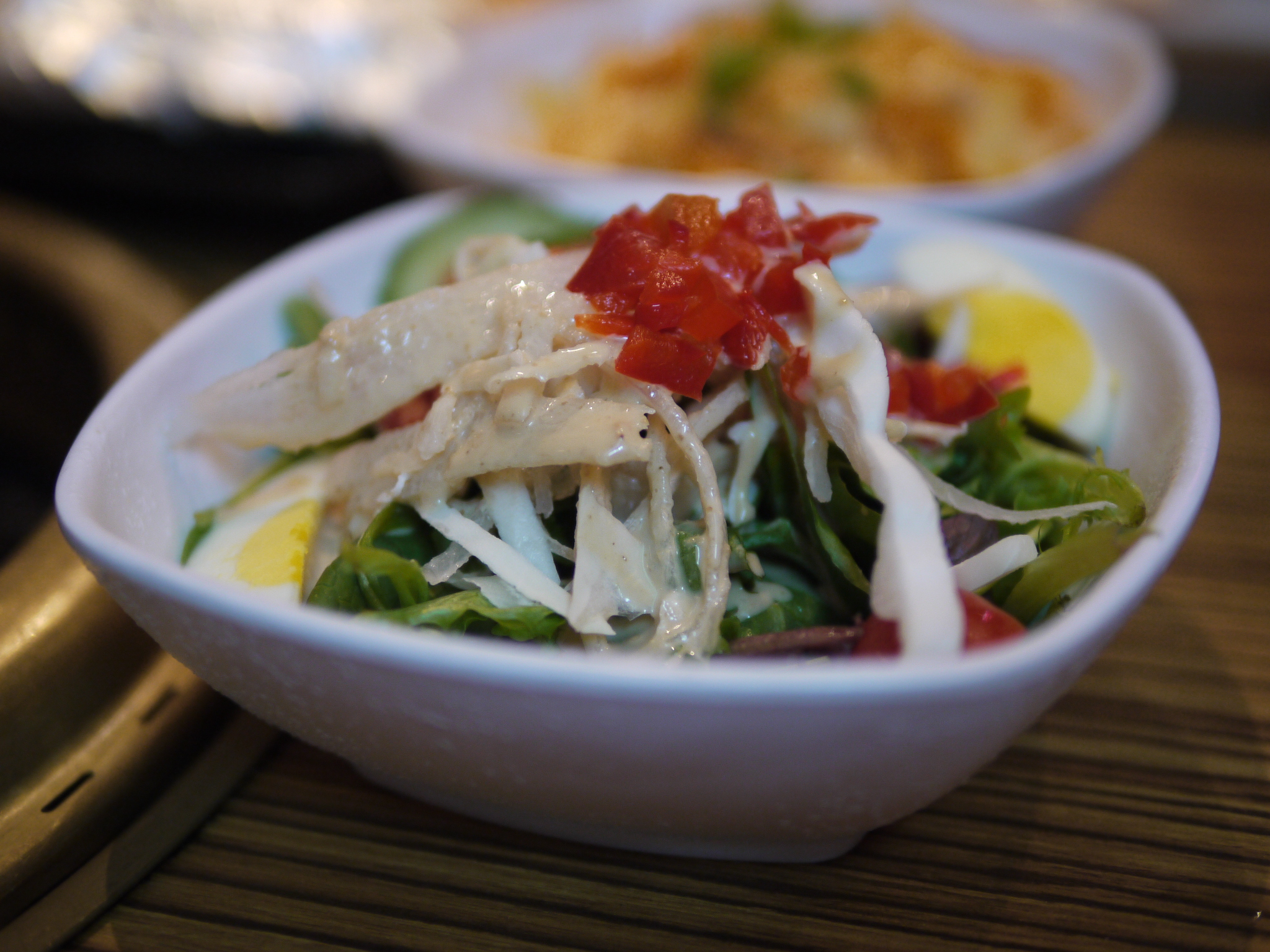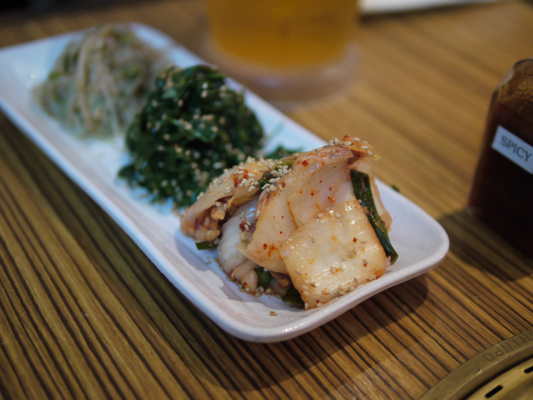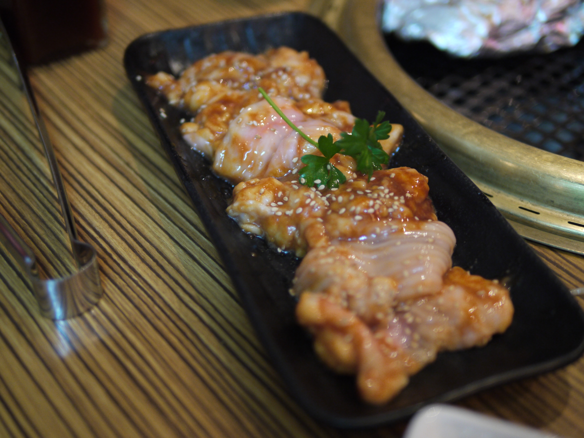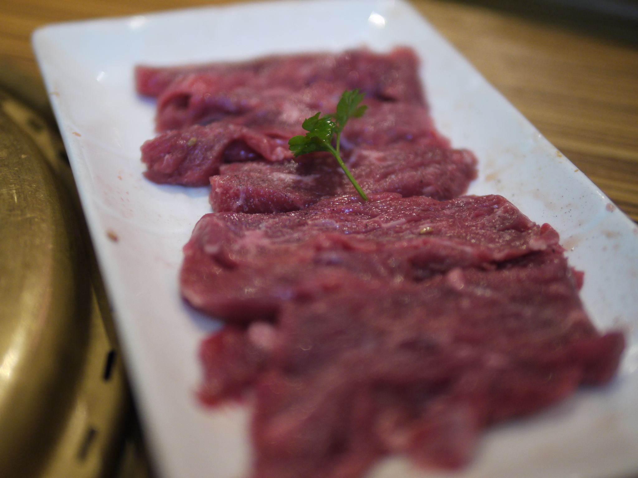 Cupertinoの牛角で毎週月曜日が終日happy hour(つまりhappy day?)らしいという噂を聞き、肉分欠乏症治療を兼ねて挑戦。いつものように、焼肉は忙し目なので(あとまあ所詮◯角だし…)F1.4手持ちonly撮影。