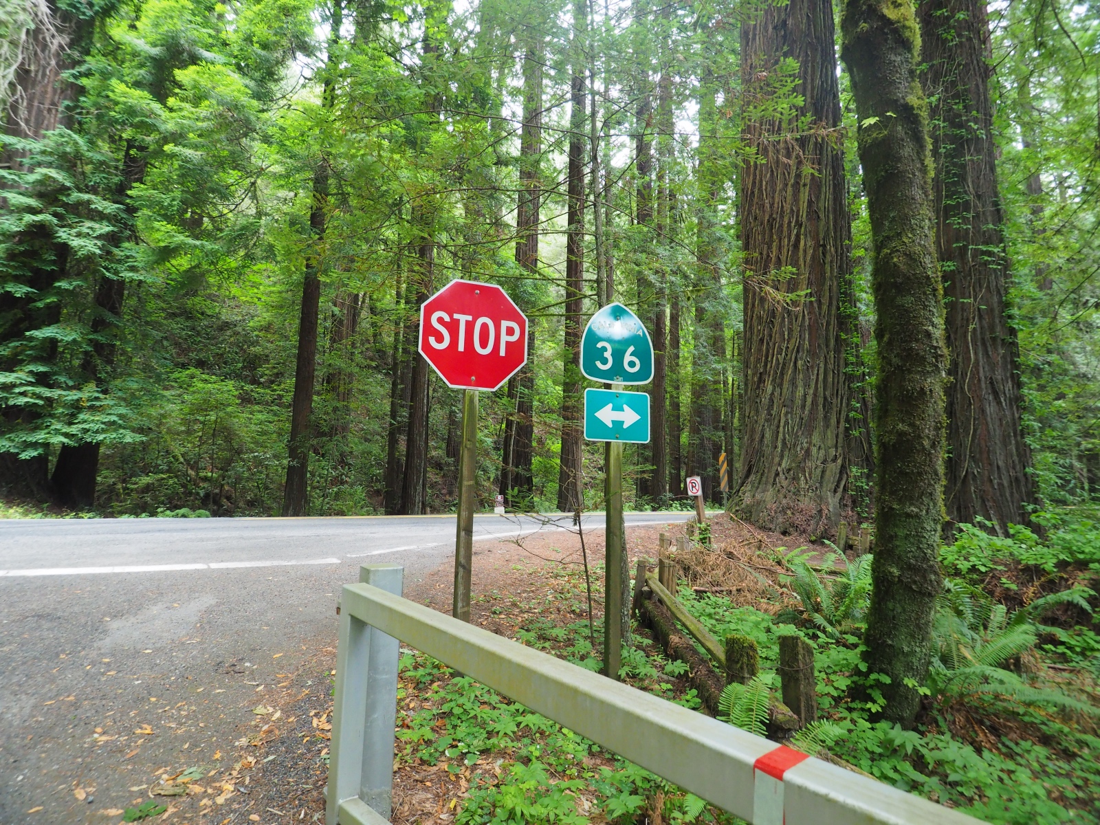 キャンプ地のGrizzly Creek Redwoods state park。かなり辺鄙なところにあるせいかあまり情報がないのだが、数少ないレビューを見るとhighwayの真横で鬱陶しいという文句が結構多い。実際真横で、日中は結構車も通るんだけど、寝てる間はほとんど気にならなかった。キャンプサイトは十分に独立しているし、トイレは水洗できれい、シャワーもあり、ということで、悪くはないと思う。個人的にちょっと残念だったのは滞在した2晩とも完全にガスになっていて星が見えなかったこと。101まで出ていくと結構快晴だったりするので、何か局所的に雲の出やすい気候なのかも。