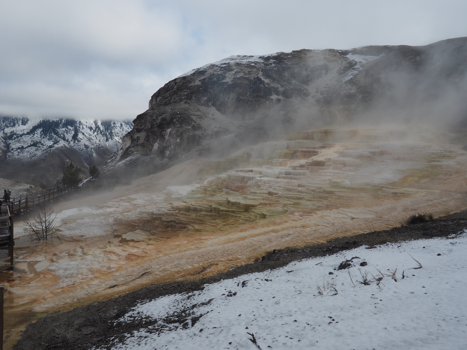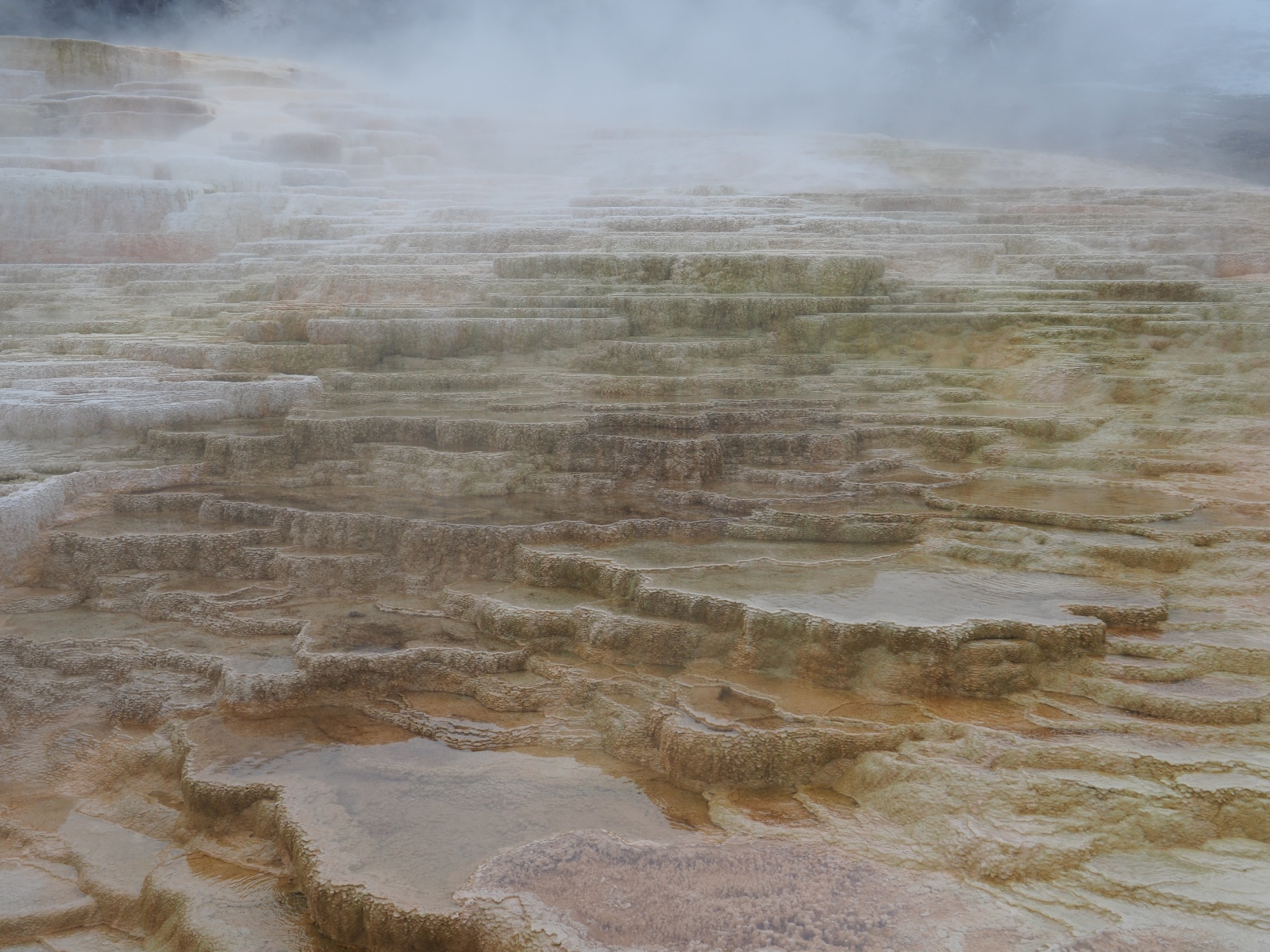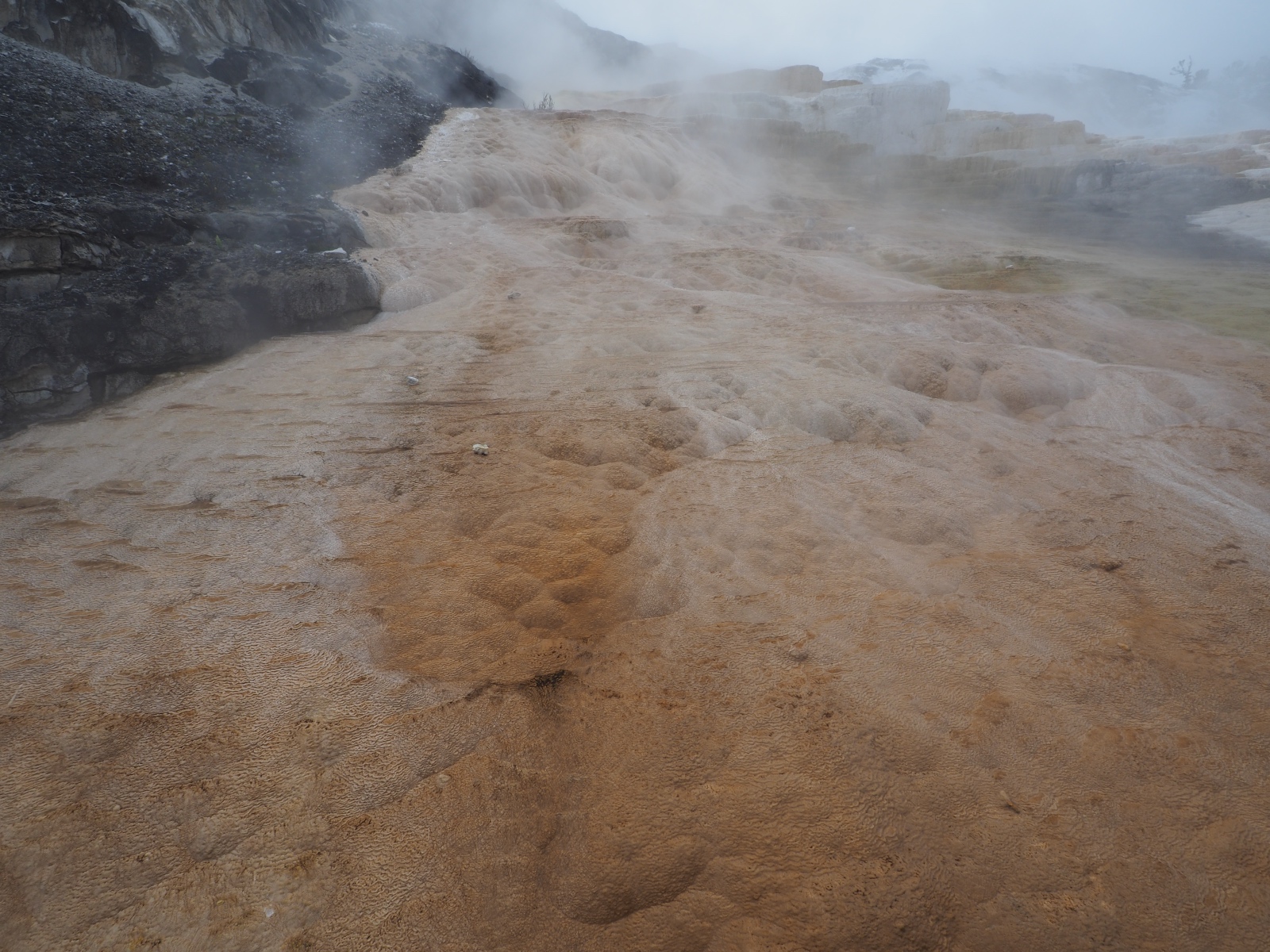 (道路閉鎖のため)majorエリアでは唯一行けてなかったMammothになんとか行きたいと思っていたのだが、Dunraven Passを越えていく道路がこの日のどこかではopen予定と聞いて粘ってみた。初日の傾向から、10時にopenするのではと思って待機してたら、読み通りに開通。ということで、ちょっと強行軍になるけどMammothへ出発。