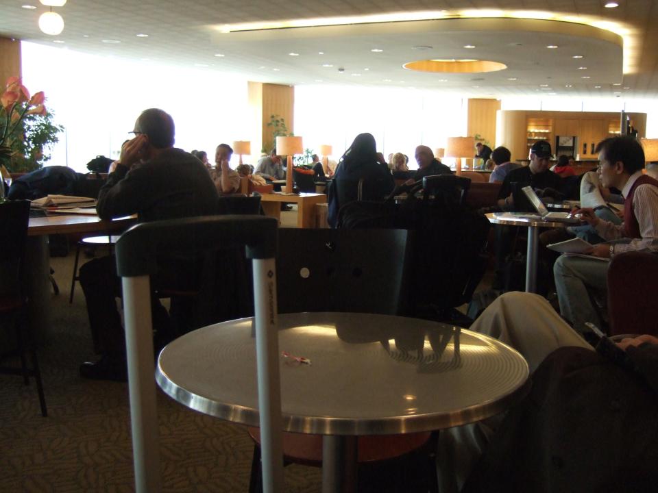 乗り継ぎは中4時間。LAX RCCで朝飯を食って仕事。