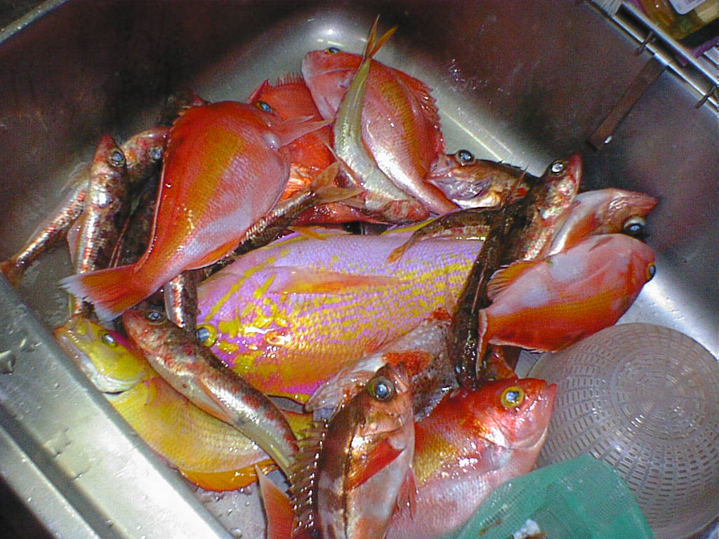 本日1番の大物(アカイサキ♂or♀)とその刺身。美味。