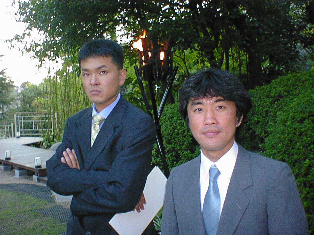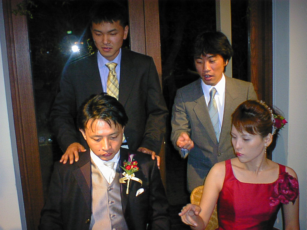 一緒に結婚式に参列するまっつぁんと古賀師匠