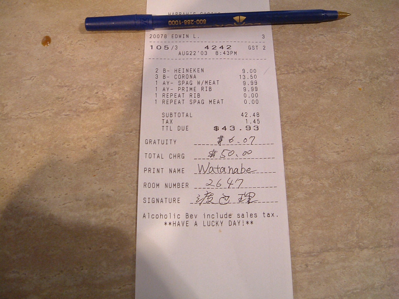 from Harrah's room