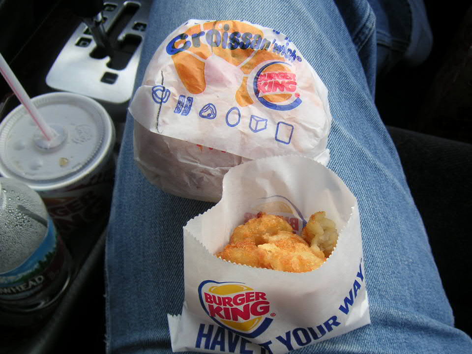 to east (breakfast: Burger King take out)