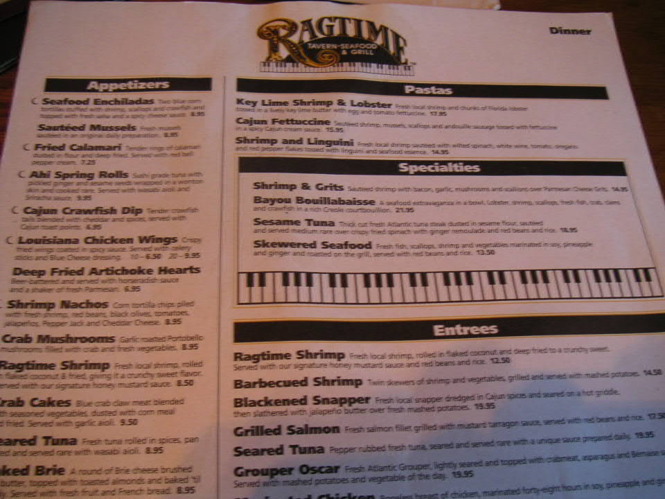 dinner at Ragtime Tavern Seafood & Grill, 207 Atlantic Blvd, Atlantic Beach 32266