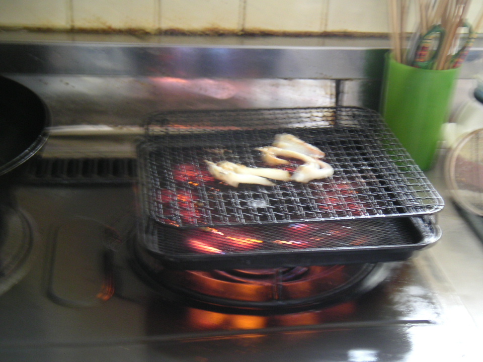 釣果を食す。釣りたてマルイカサイコー。ゲソらは寅風にあぶってみた。非常に美味し。
