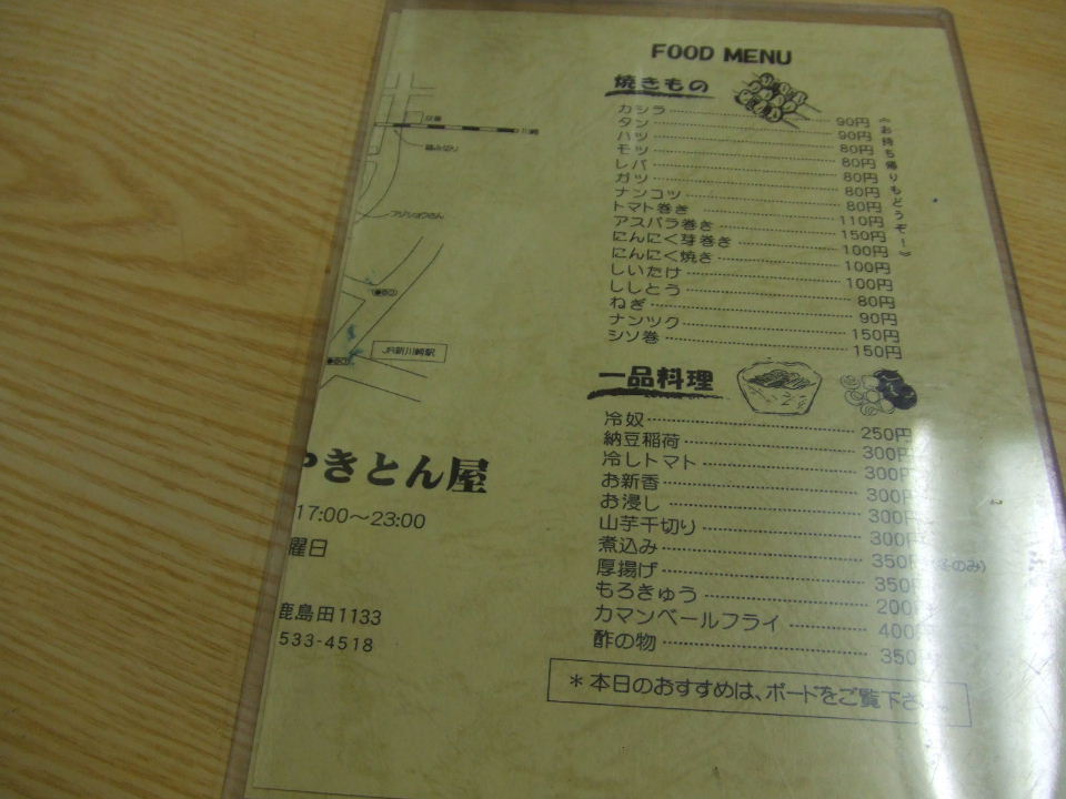 鹿島田周辺居酒屋探訪シリーズその?。やきとん屋へ。かなりイケる。気に入った。