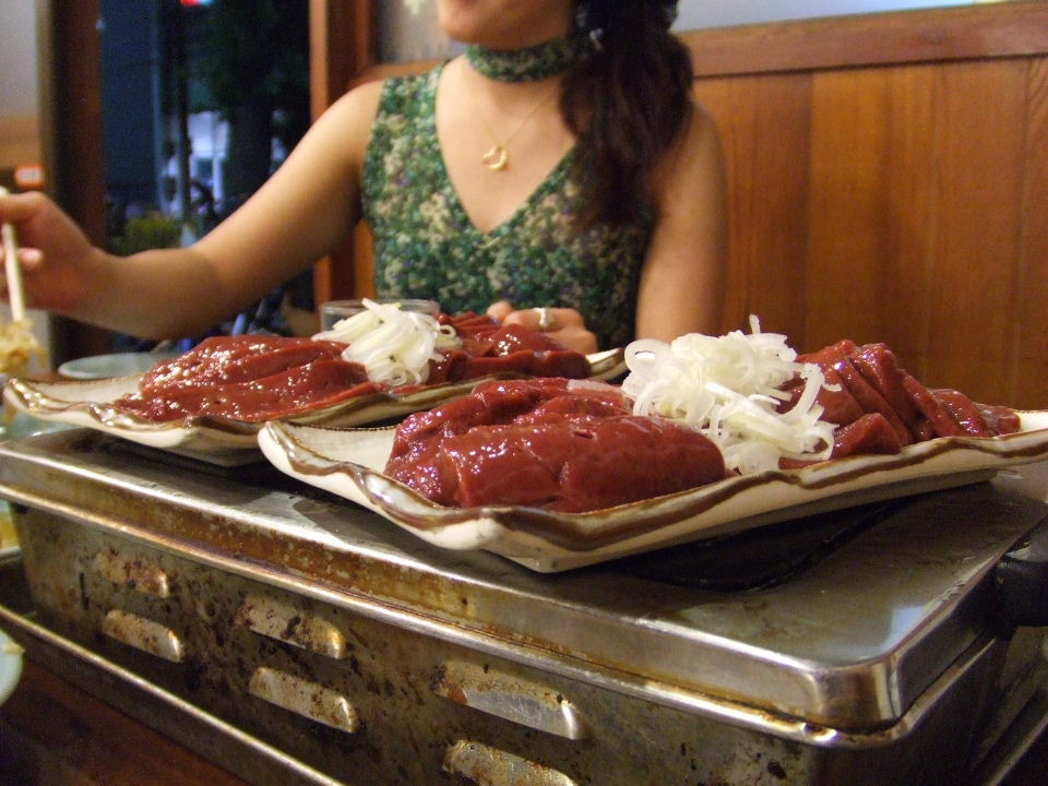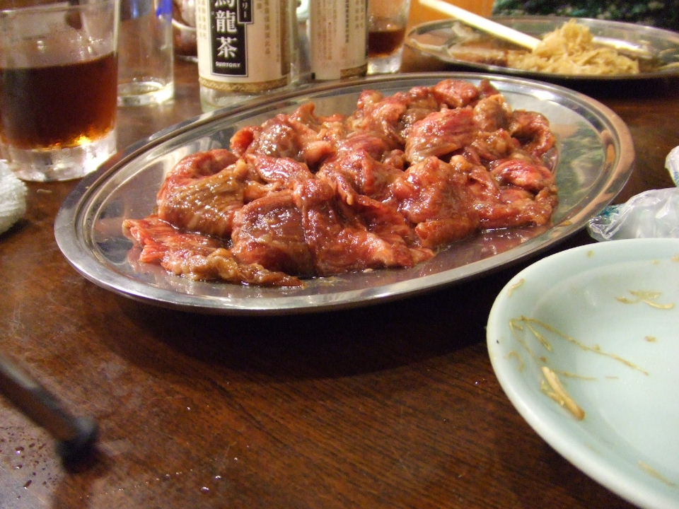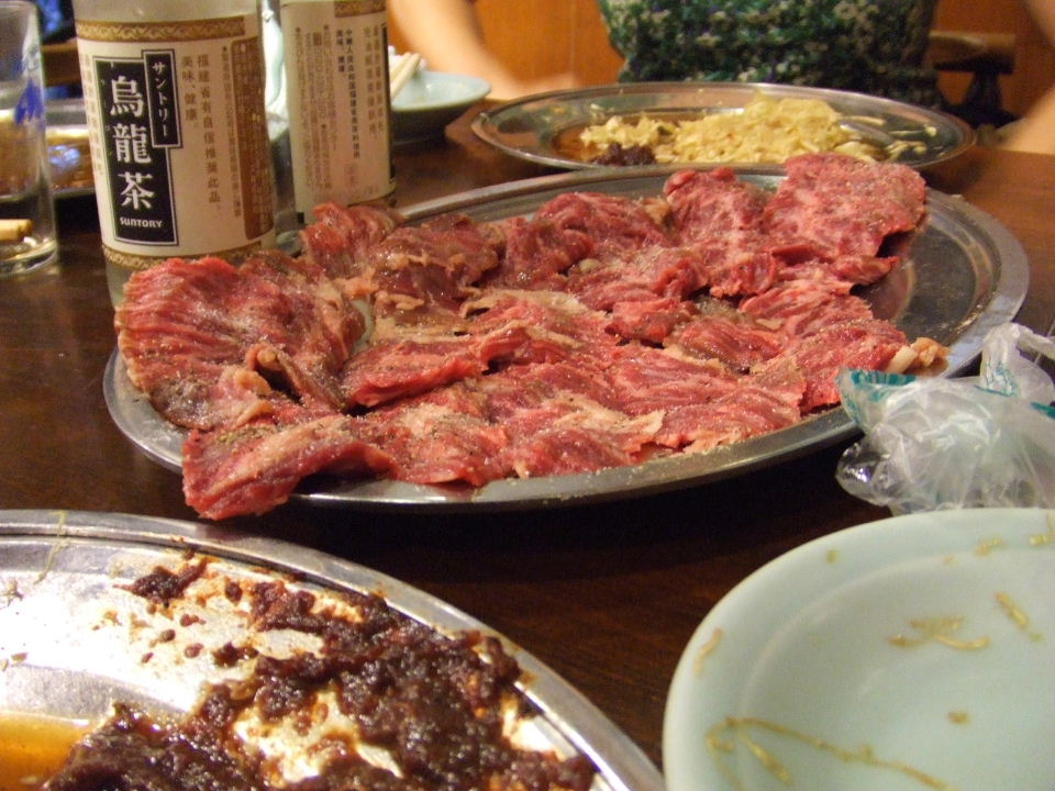 汗かいたあとはビール&焼き肉で栄養補給。