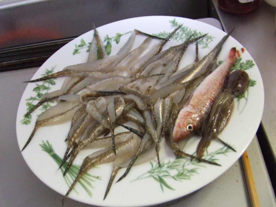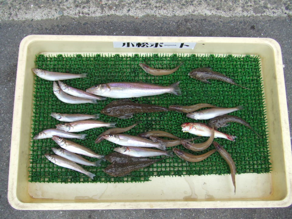 3人合計の釣果はシロギス32、メゴチ34、オジサン1、ミニイイダコ1。