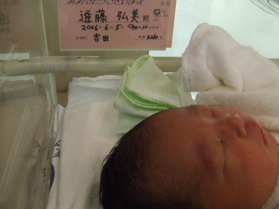 6月5日に誕生した進藤家長女ジー子(仮名)を拝みに行く。