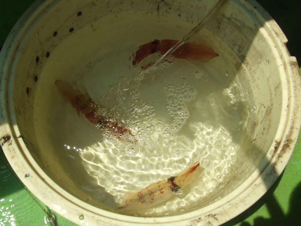 相変わらずあんまり釣れず(3杯)。トナリのおっさんは23杯もあげたのに。修行が足らないのか...。