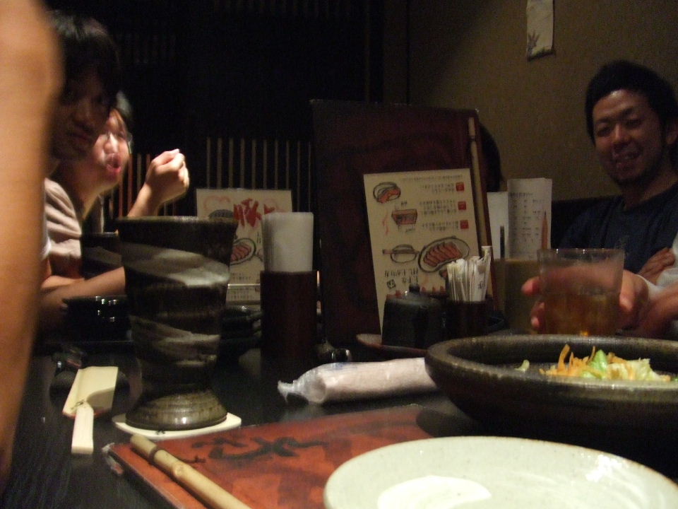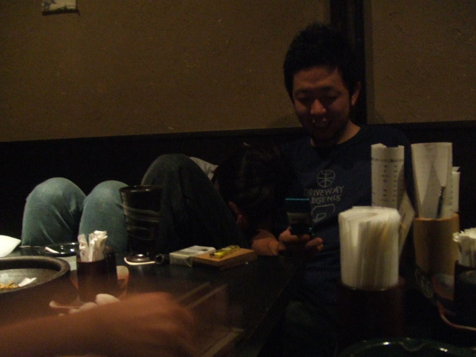 で実習生の亀岡君の送別会。やや荒れ気味。