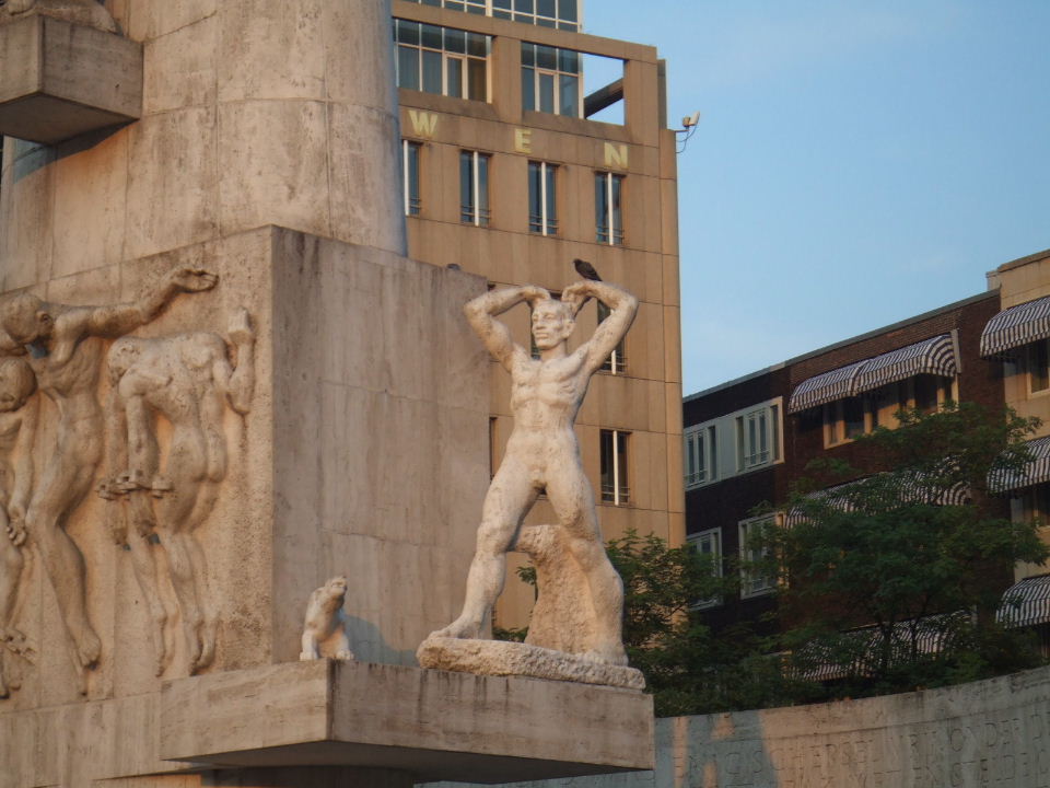 チャリ返却後、Dam 周辺に飯を食いに行く。