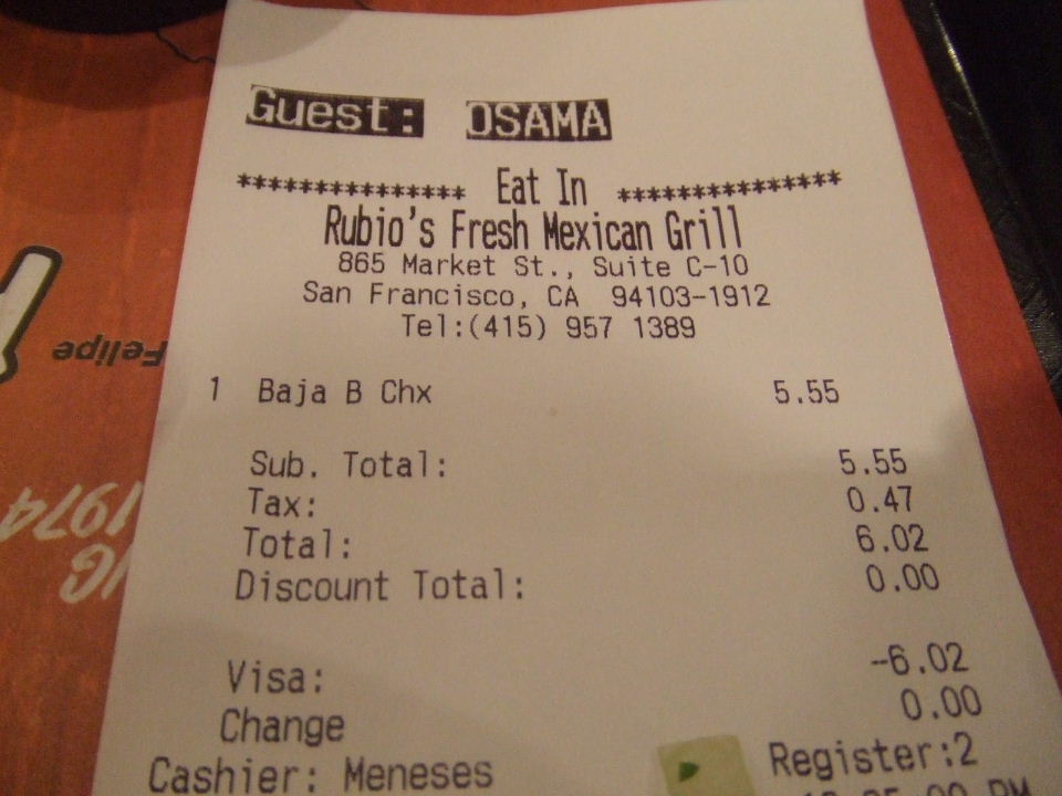 昼飯は昨晩に引き続きSan Francisco Shopping CentreのFood Courtへ行きRubio'sにて。
