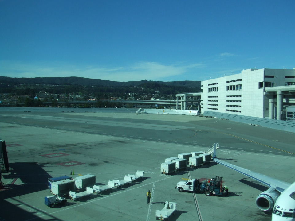 SFO。朝飯はせっかくなので(?)デブ飯。それにしてもいい天気だ。