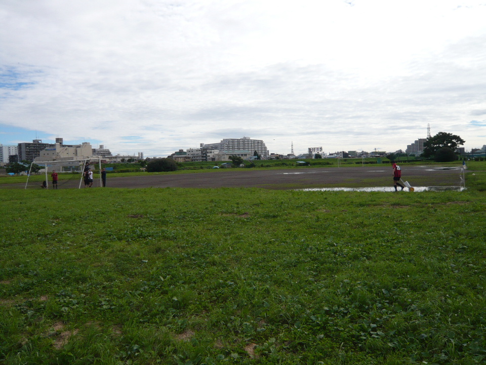 川崎市リーグ初戦。が、相手チームが人数揃わず不戦勝。で、こんなグランドで練習試合。